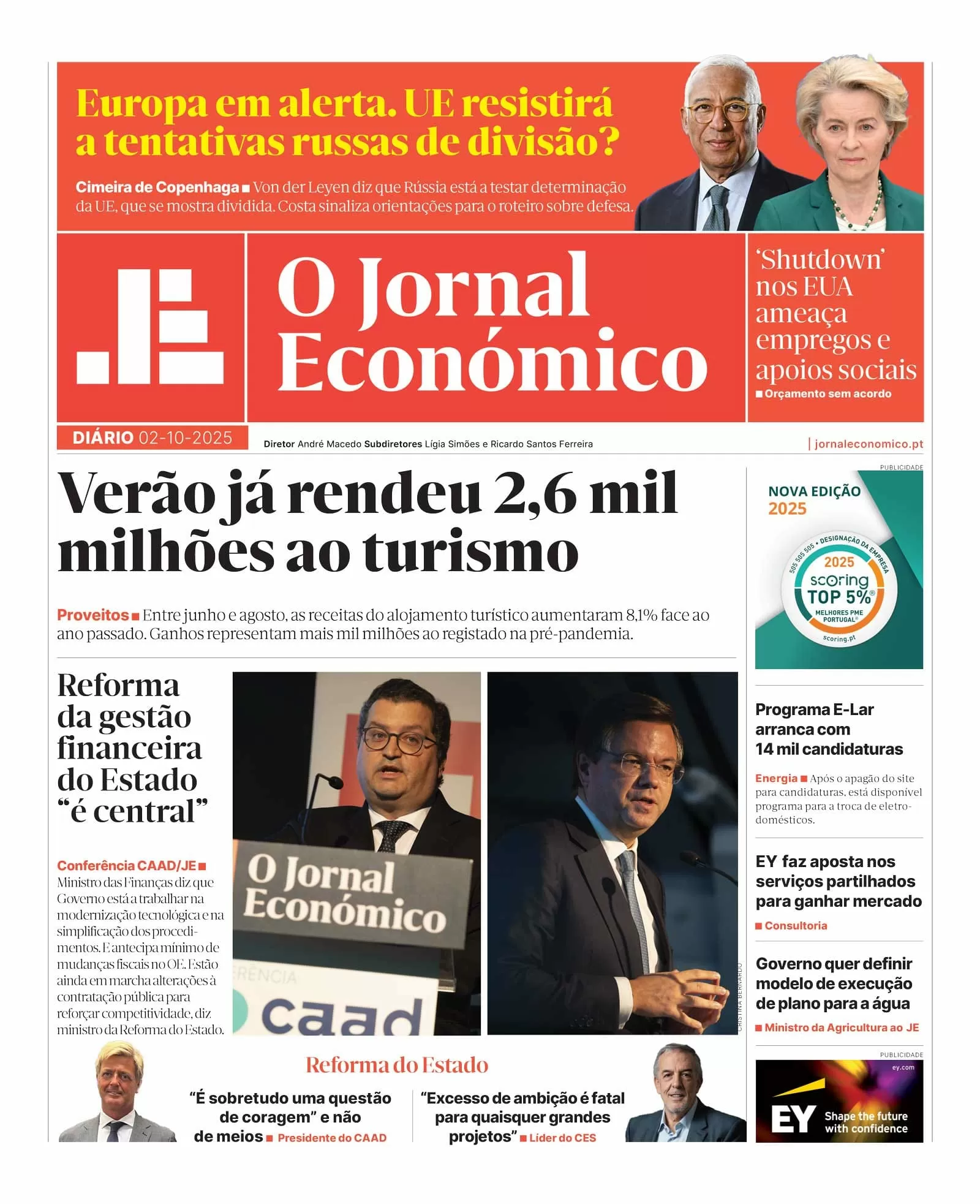 Início » A primeira página do Jornal Económico de 2 de outubro